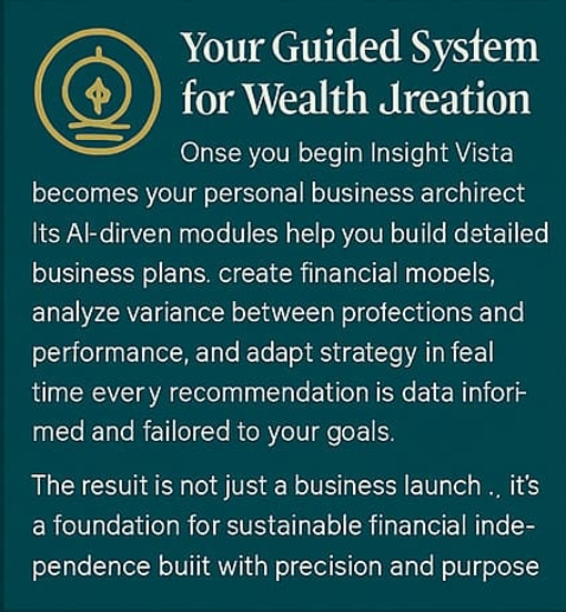 Whether youire a consultant. led aigner, or industry expen, Insight Vista tiansiates your experience into enterprise structure. You’ll discover how to design business models that scale, identify market opportunities, and make confident investment decisions. It’s the bridge between expertise and entrepreneurship, providing the tools Fortune 500s use — simplified for individuals ready to lead their own ventures.